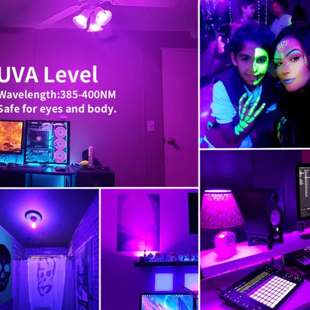 2PCS 1PC LED Black UV Halloween Purple Light Bulb 9.5W Black Bulb Replacement Up to 100W Black light UVA Level 385-400nm A19 Spooky Halloween Atmosphere