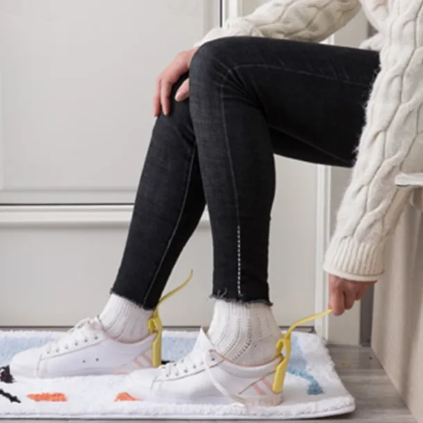2pcs Lazy Shoes Helper, Sock Slider Handled Shoe Horn Shoe Lifting Helper, for Seniors Elderly Disabled Plastic Shoehorn Fits All Shoes