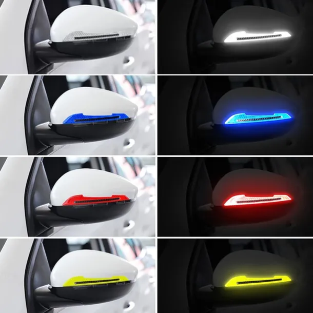 2pcs Reflective Car Stickers Rearview Mirror Reflective Protection Stickers Decals Safety Warning Anti-collision Universal Car Exterior Accessories