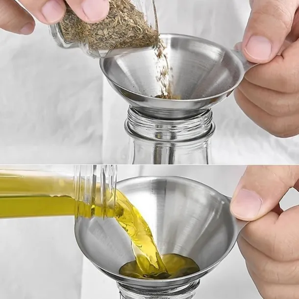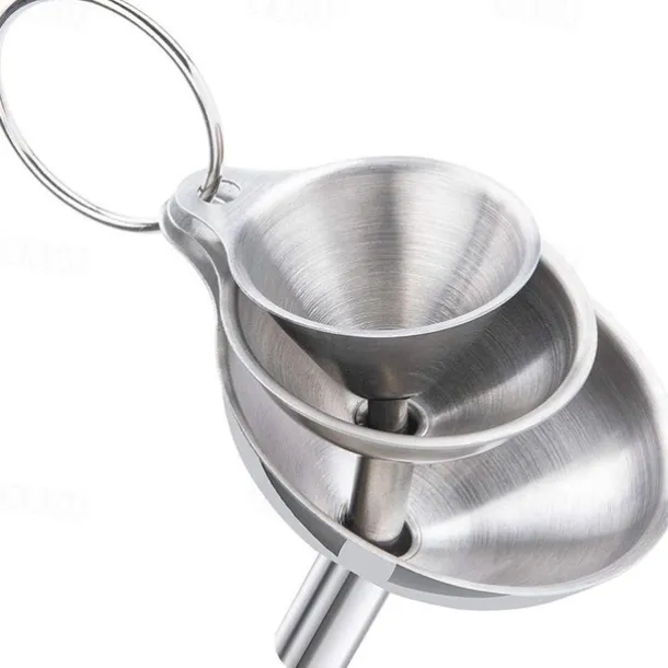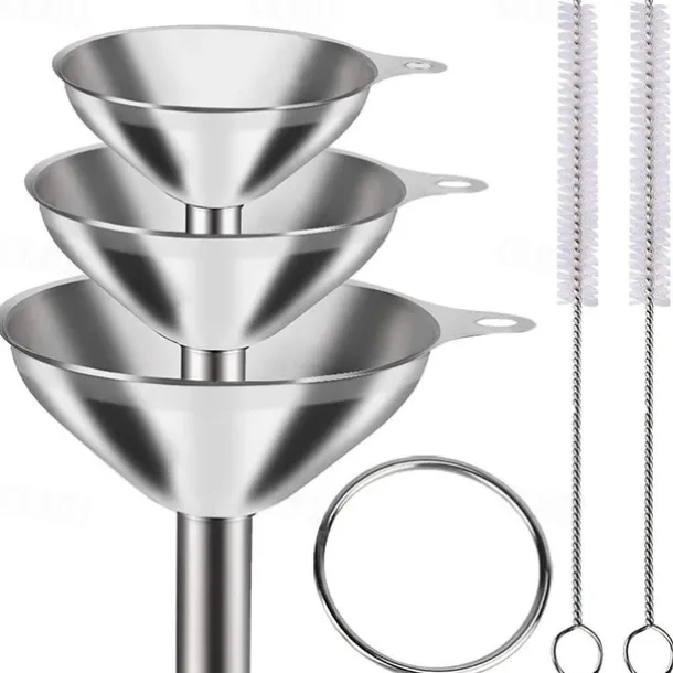 3/5pcs Stainless Steel Funnels For Kitchen Use, Large Tiny Small Funnel Set Of 3, Metal Cooking Powder Food Grade Flask Funnels For Filling Bottles Liquor Water Spice, 2pcs Cleaning Brushes