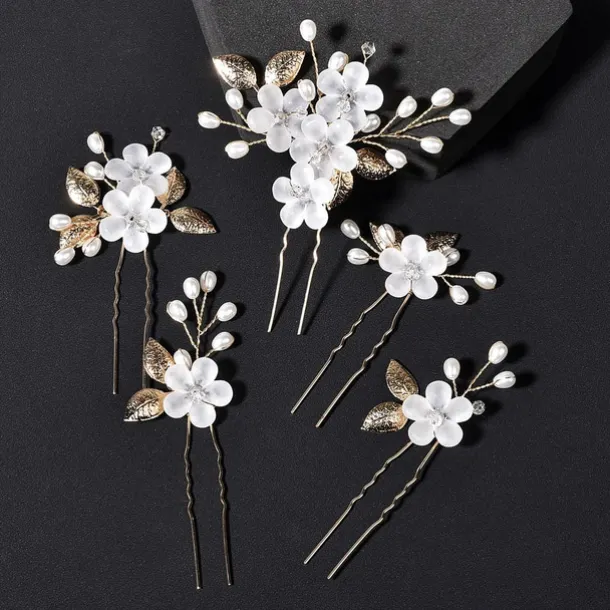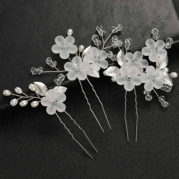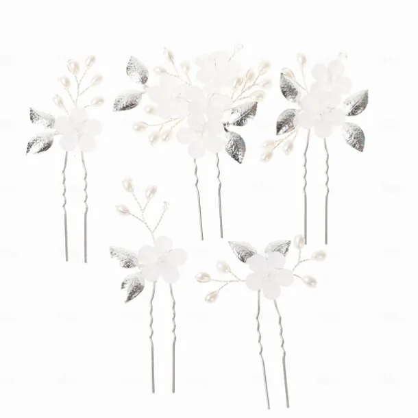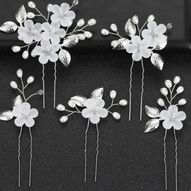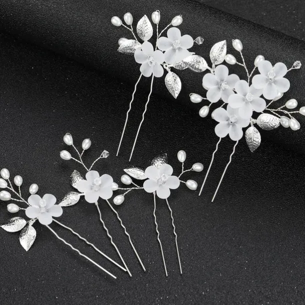 3/5PCS Wedding Hair Comb Bridal Hair Pins Set Silver Crystal Pearl Hair Side Comb U-shaped Flower Rhinestone Wedding Hair Accessories for Bride Bridesmaid Prom