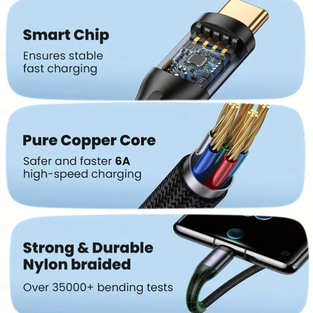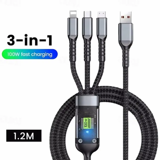 3-in-1 100W Fast Charging Cable Smart Super Fast Charging Support Multi-Interface Charging USB Visual Power Charging Cable Compatible With Apple Samsung OPPO Car Fast Charging Cable