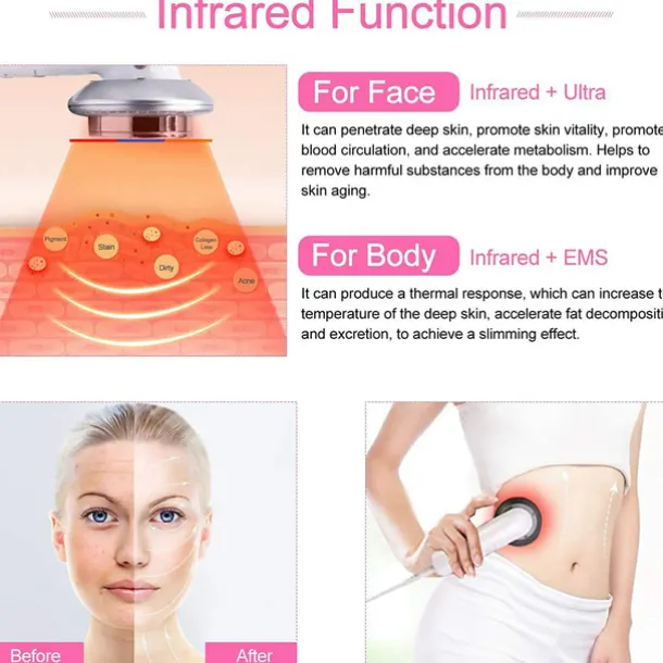 2. Multi-functional Benefits: With its multiple functions, our Body & Face Shaping Machine can remove fat in the desired area, tighten your skin, thin your face, waist, and even relax your body. It can be used easily on different body parts such as arms, legs, face, waist, back, abdomen, and buttocks.