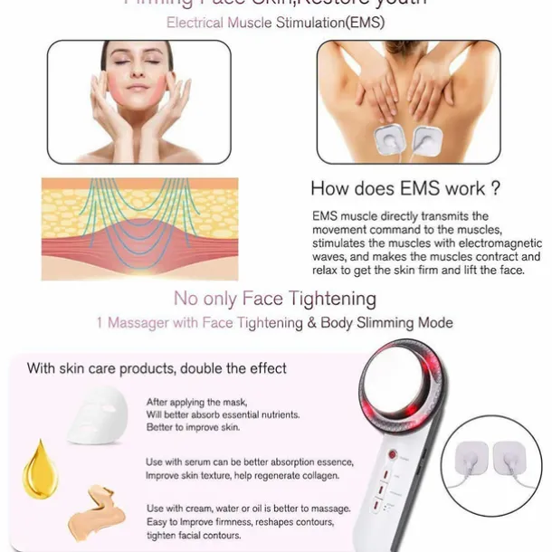 1. Achieve Body and Face Shaping: Our 3 in 1 Body & Face Shaping Machine features up to 1 million high-frequency micro-vibrations per second that make the cells on your body and face move continuously, burning fat and delivering the desired results of shaping and thinning the face.