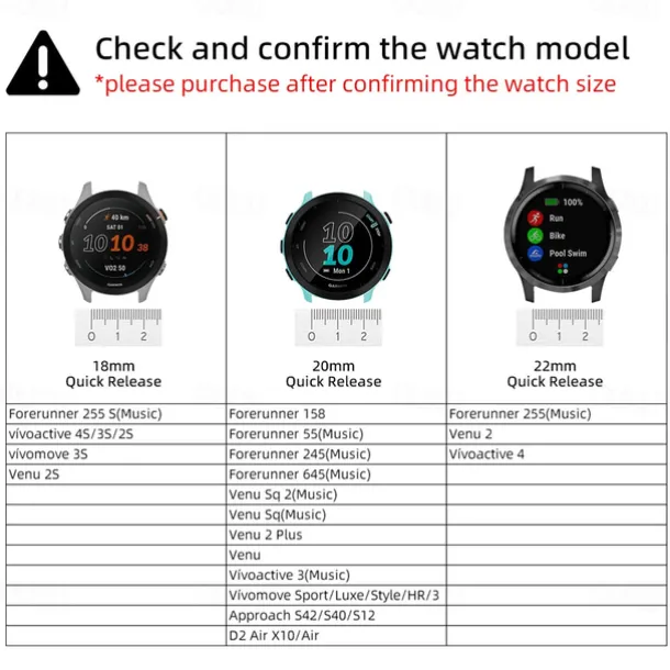 – Specially designed for various Garmin and Fossil smartwatches, including Vivoactive 4S, Venu 2S, Vivomove 3S, Active S, Gen 5E, Q Venture Gen 3/Gen 4/HR Gen 4, and Women’s Gen 4 Sport.