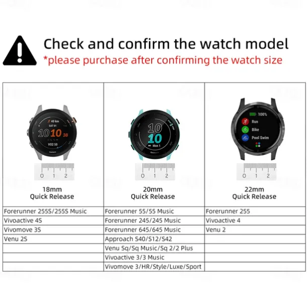 – Compatible with a variety of smartwatch models, including Garmin Approach S42, S40, S12/ Forerunner 55, 158, 245, 645 Music/ Venu/ Venu SQ 2 Music/ Galaxy Active 2