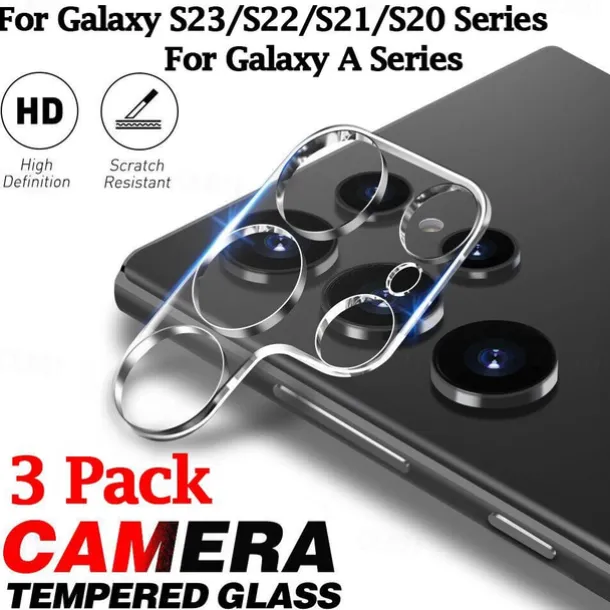 Compatible Brand: Samsung Galaxy, Phone/Tablet Compatible Model: S23 S22 S21 S20 Ultra Plus FE, A72 A52 A42 A32 A22 A12 A02, S24 Ultra Plus, S25 Ultra, S25 Ultra Plus, Type: Camera Lens Protector, Screen Protector Quantity: 3 pcs, Screen Protector Function: High Definition, 9H Hardness, Scratch Proof, Screen Protector Material: Tempered Glass, What’s in the box: Camera Lens Protector*3,