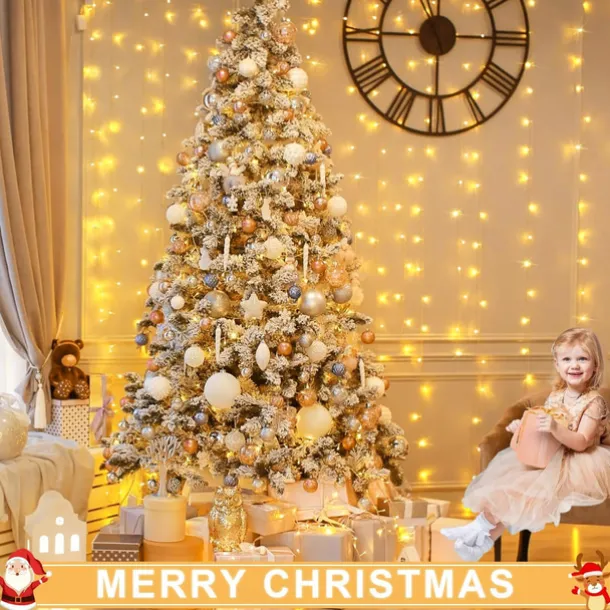 300 LED 9.8×9.8Ft Remote Control Christmas Curtain Lights USB Plug in Fairy Curtain Lights Outdoor Window Wall Hanging Curtain String Lights for Bedroom Backdrop Wedding Party Indoor Decor Warm White
