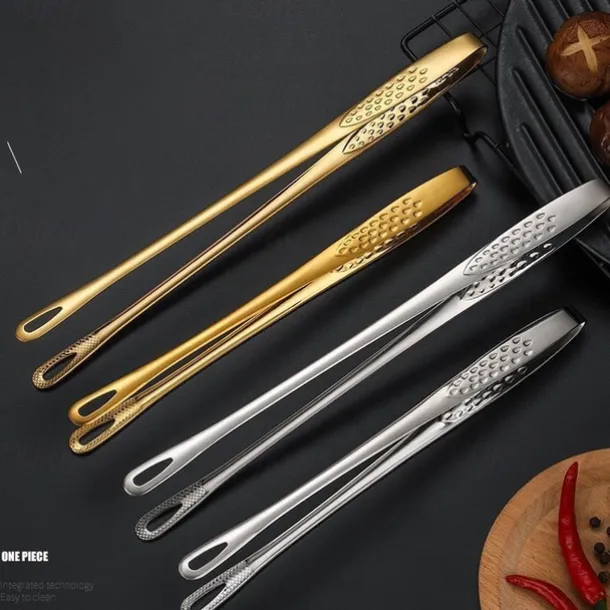 304 Stainless Steel Yakitori Grill Tongs – Japanese BBQ Rotating Lock Clip for Charcoal, Campfire & Teppanyaki | Non-Slip Teeth + Heat-Resistant Silicone Grip