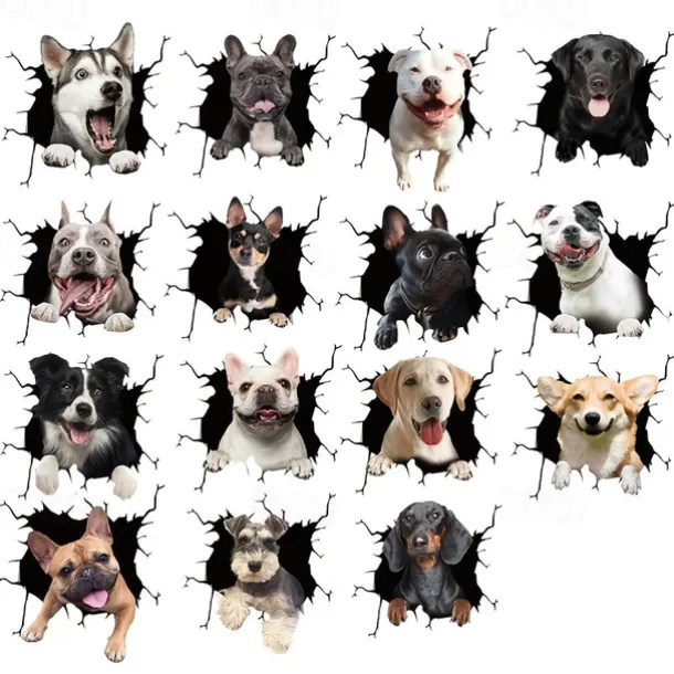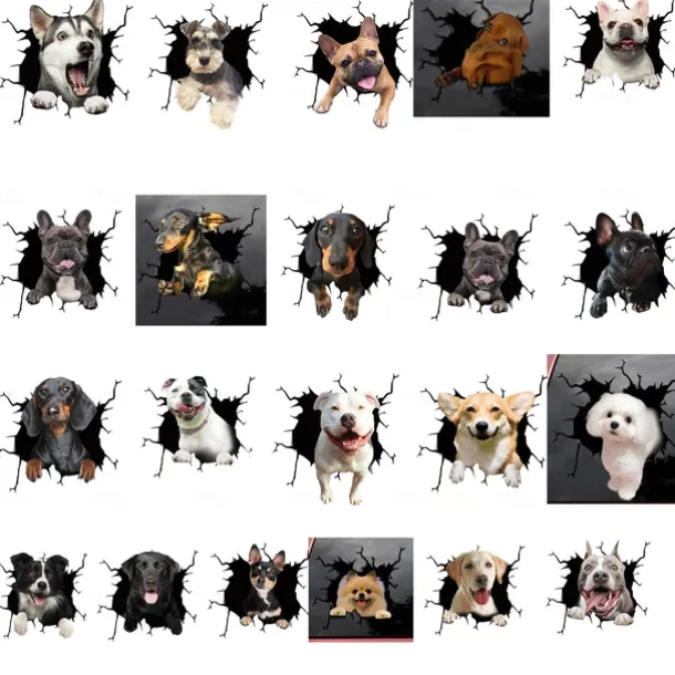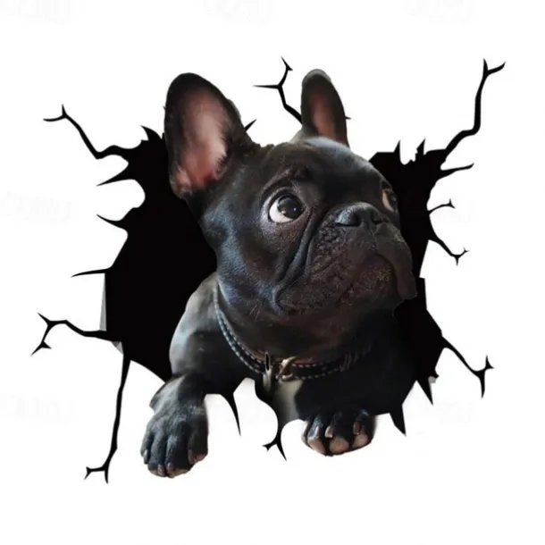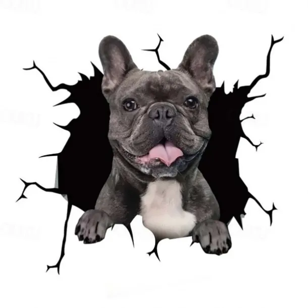 3D Car Stickers Auto Rear Window Puppy Broken Window Stickers French Bulldog Car Stickers Vinyl Decals