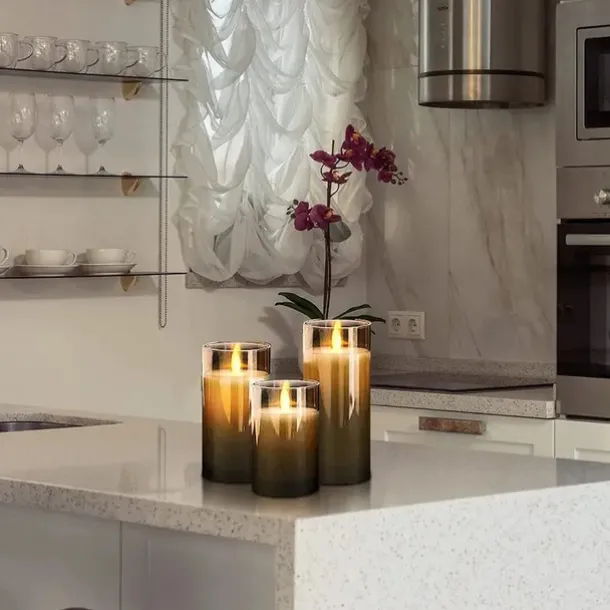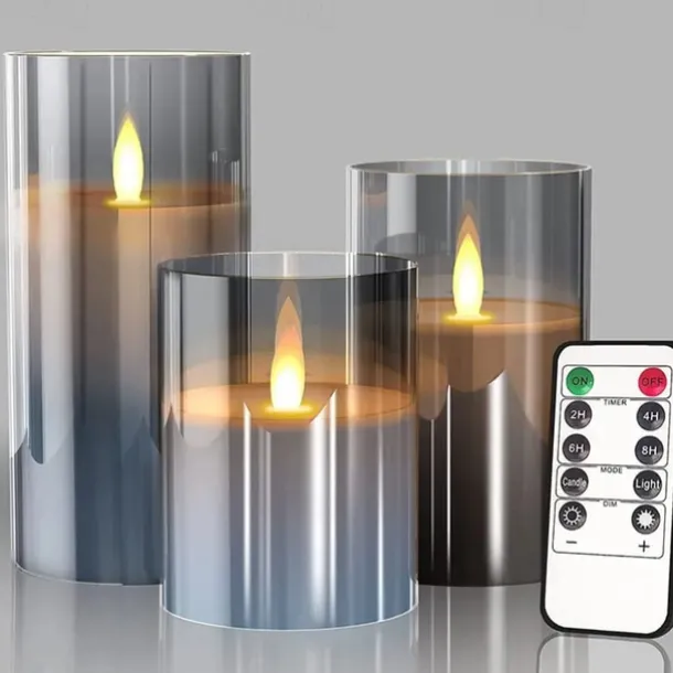 3pcs Flameless Candles Lights with Timer Battery Operated Flickering Candles Imitation Glass Candles with Remote for Romantic Ambiance and Home Decoration Durable Acrylic Shell