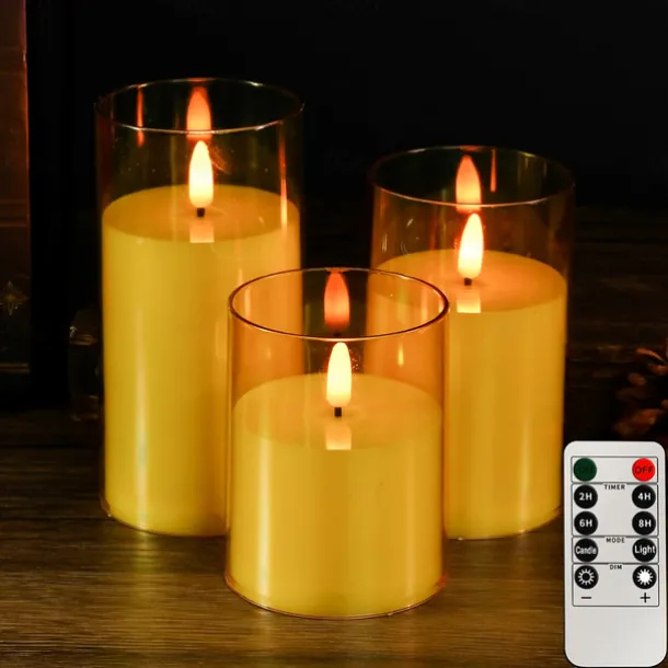 3pcs Flameless LED Candle Lights with Remote Control, AAA Battery Powered Flashing Night Lamp for Christmas, Wedding, Party, Halloween, Home, Bedroom Holiday Decoration