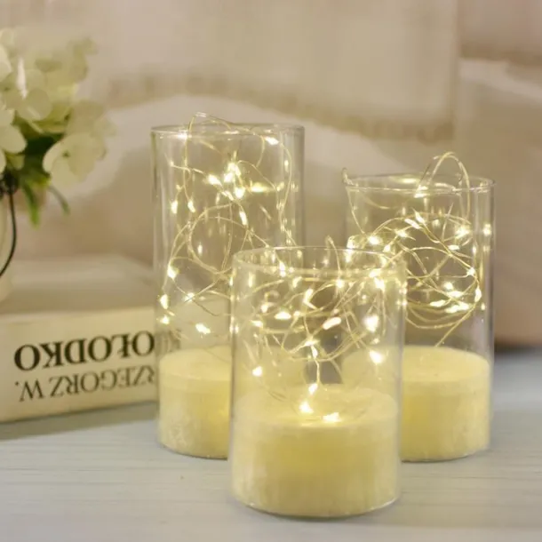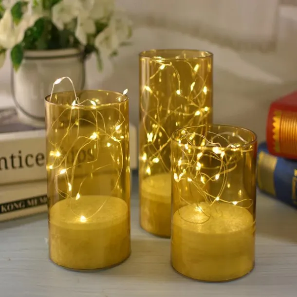 3pcs/Set Acylinder Flameless Candles With Remote, Embedded String Lights & Timer – Perfect for Halloween Decor & Home Decor