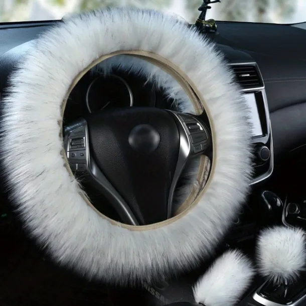 3PCs/Set Car Steering Wheel Cover Gear Shift Handbrake Fuzzy Cover Winter Warm Fashion Universal Car Interior Accessories