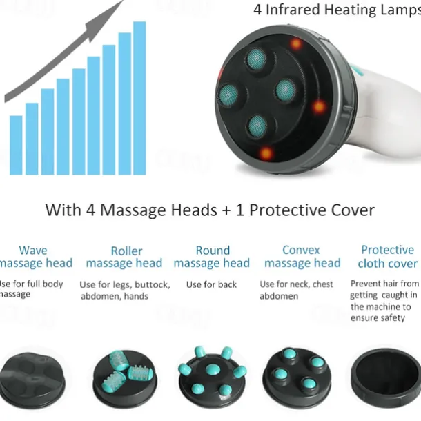 -Massage everywhere with our four different massage heads, including wavy massager head for the neck, finger massage head for the body, the ball massage head for the waist and abdomen, and the roller massage head for the arms and legs.