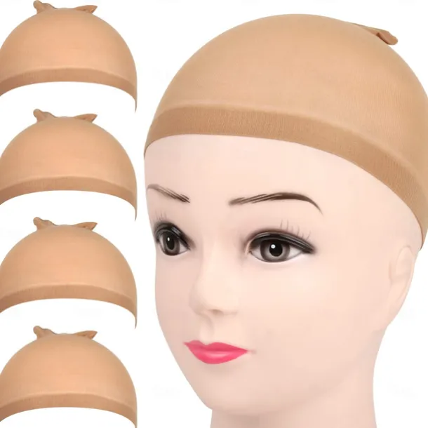 4 pieces Light Brown Stocking Wig Caps Stretchy Nylon Wig Caps for Women