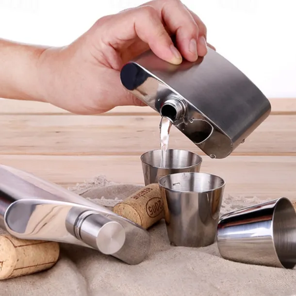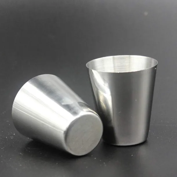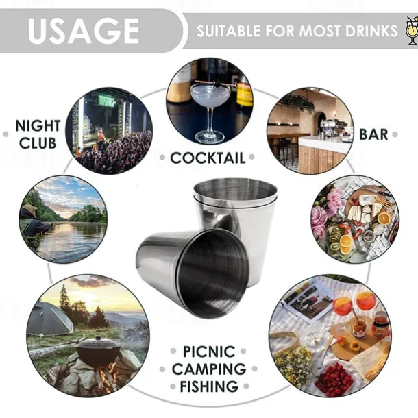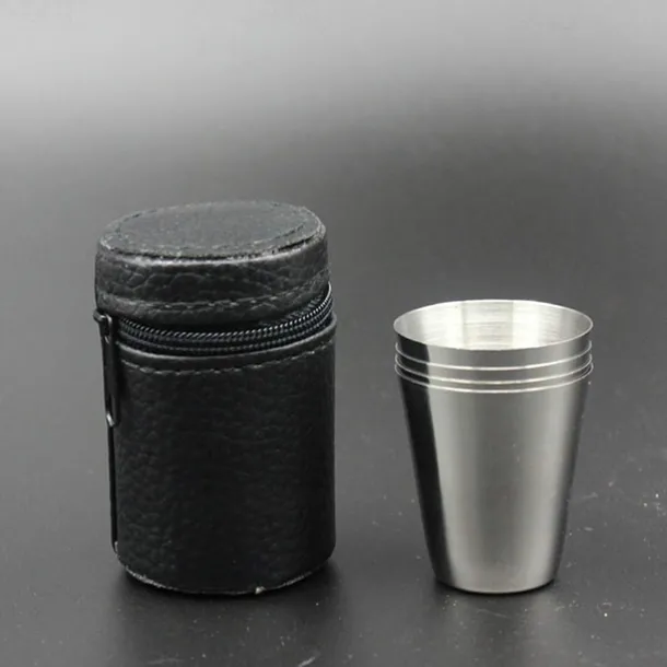 4 Stainless Steel Shot Cups Drinking Vessel with Black Leather Carrying Case (30ml) Outdoor Camping Travel Unbreakable Metal Shooters for Whiskey Tequila Liquor Great Barware Gift