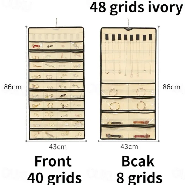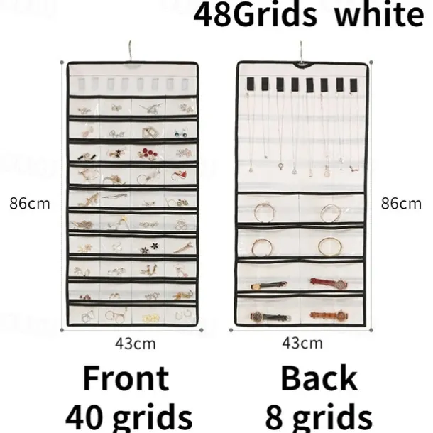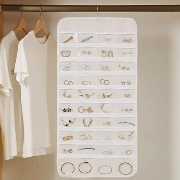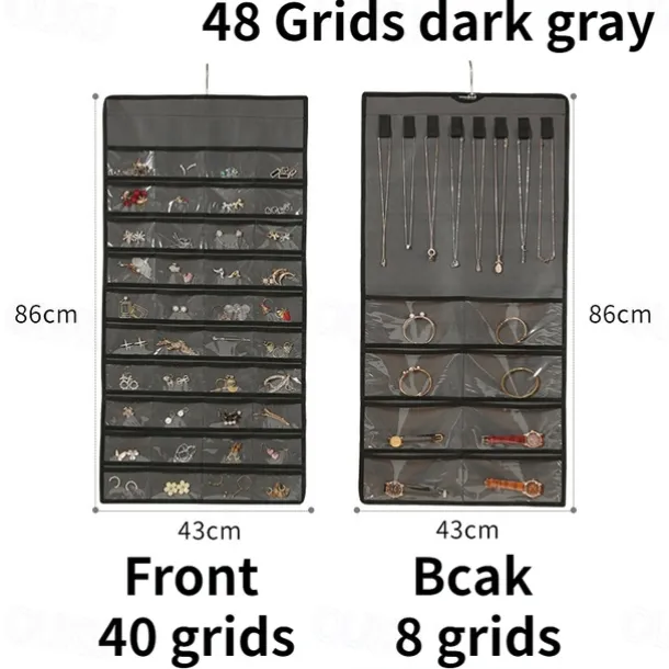 48Grids Hanging Jewelry Storage Earrings Necklace Bracelet Hanging Transparent Bag With Compartments Holder Organizer