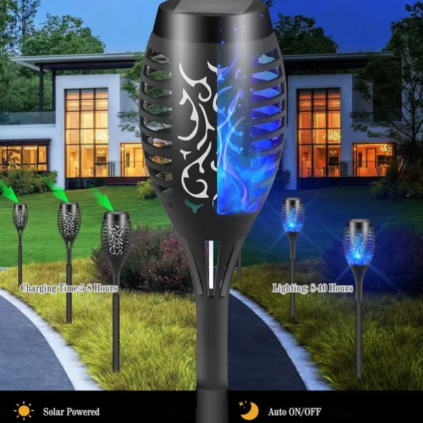 4pcs Solar Flame Lights Waterproof Multicolor Lawn Light Outdoor Garden Patio Trail Walkway Halloween Christmas Party Holiday Landscape Decoration