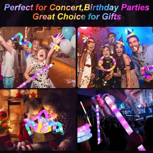 5/10/12pcs LED Jumbo Light Up Pop Fidget Tubes – Large Glow Sticks for Party Supplies and Stress Relief