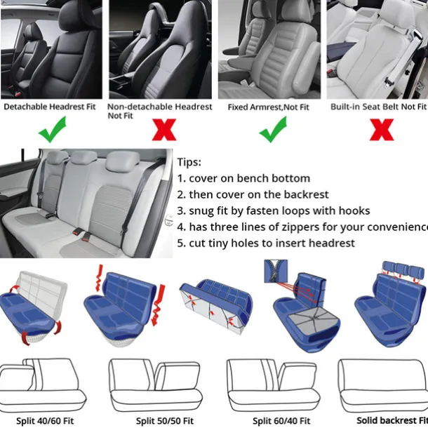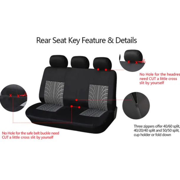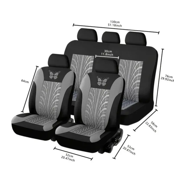 5. Universal Fit: Our high-quality covers come with a universal size that can fit most car seats, including 5 headrest covers, 2 front seat covers, 1 rear backrest cover, and 1 rear seat cushion. The measurements are as follows: headrest covers 30*27cm, front seat covers 118*56cm, rear backrest cover 135*76cm, and rear seat cushion 135*56cm.