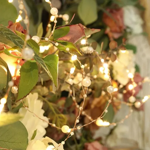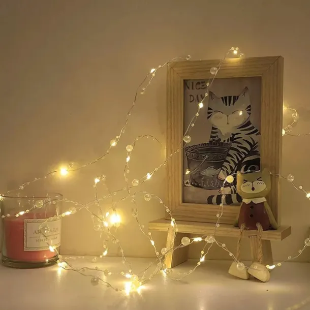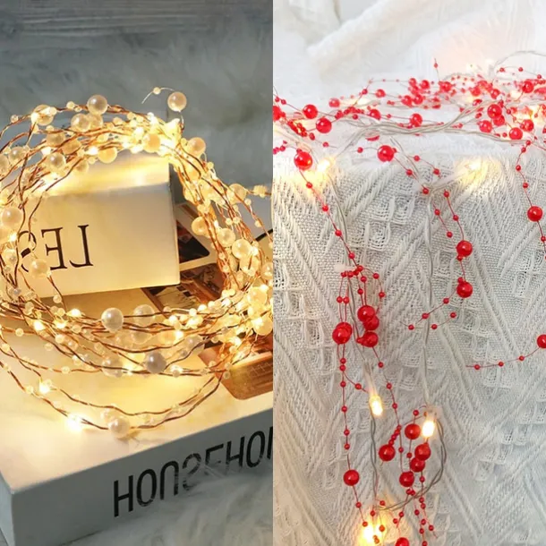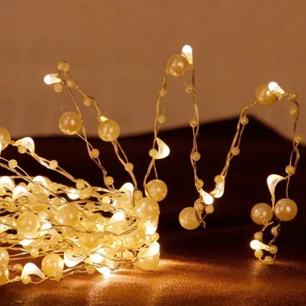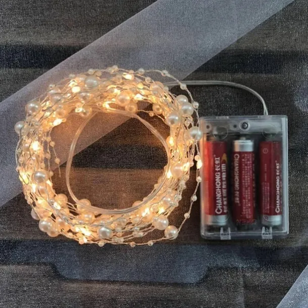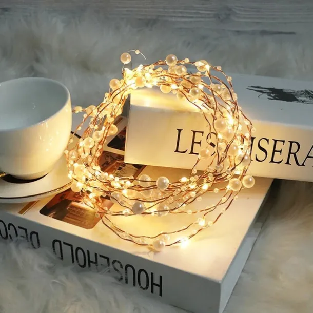 5m 50leds Pearl Wire Copper String Lights Battery Powered Fairy Lamp Christmas Wedding Party Home Garland Holiday Decoration
