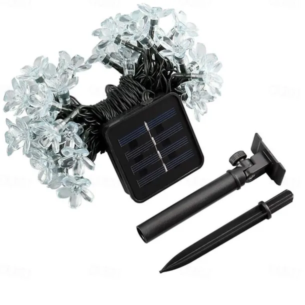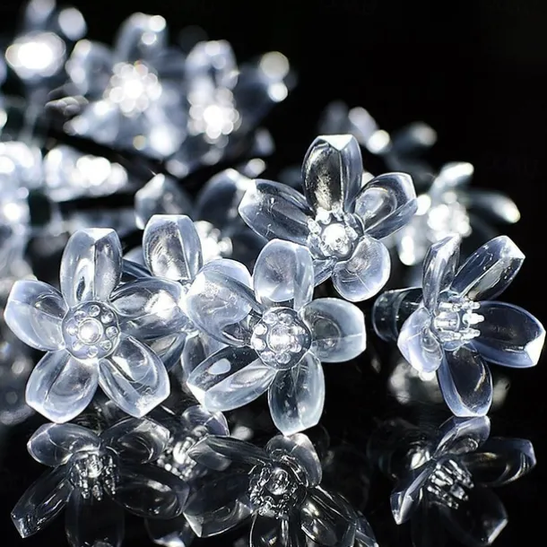 5m Solar Cherry Blossom String Lights,20 LEDs Waterproof Christmas String Lights, Warm White/RGB/Blue Garden Lights for Christmas Outdoor Night Lighting