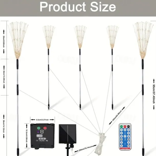 Quantity: 5pcs, LED Beads Quantity: 600, Light Color: Warm White, Cold White, Green, Multi Color, Type: LED Solar Lights, Pathway Lights & Lanterns, Features: Solar Powered, Christmas Wedding Decoration, 8 Lighting Modes, Wattage (W): 5, Voltage (V): 5,