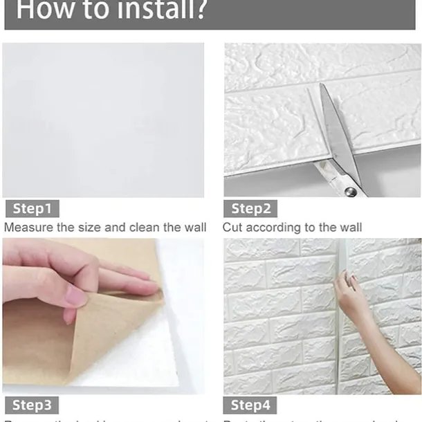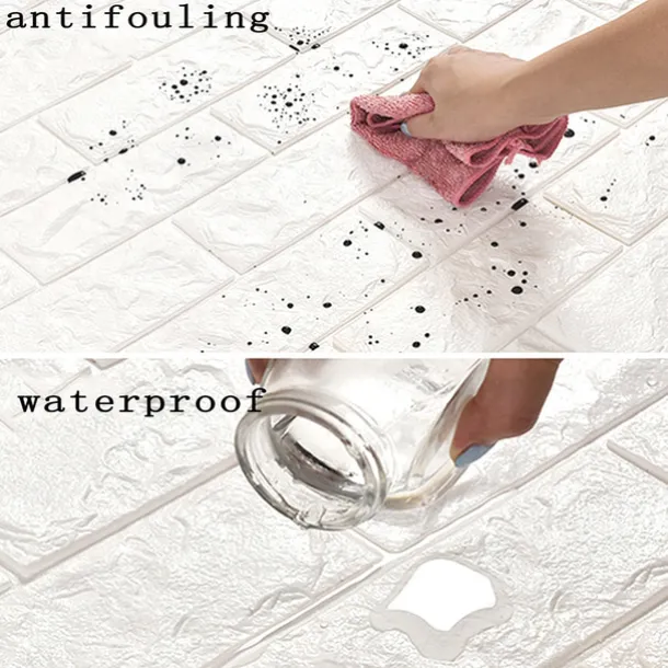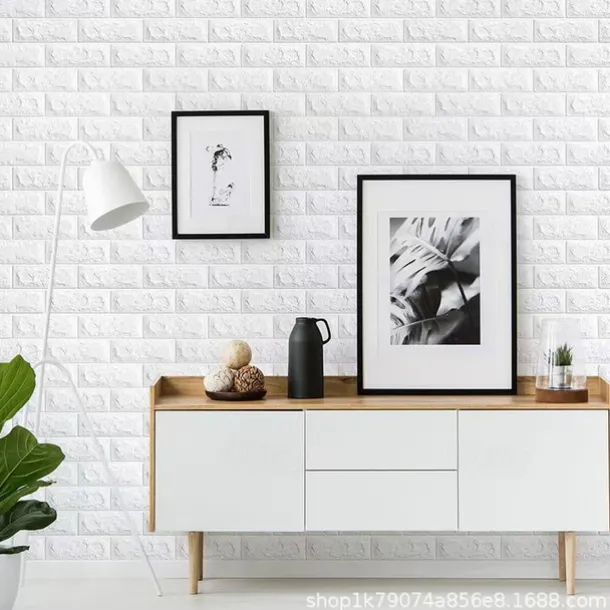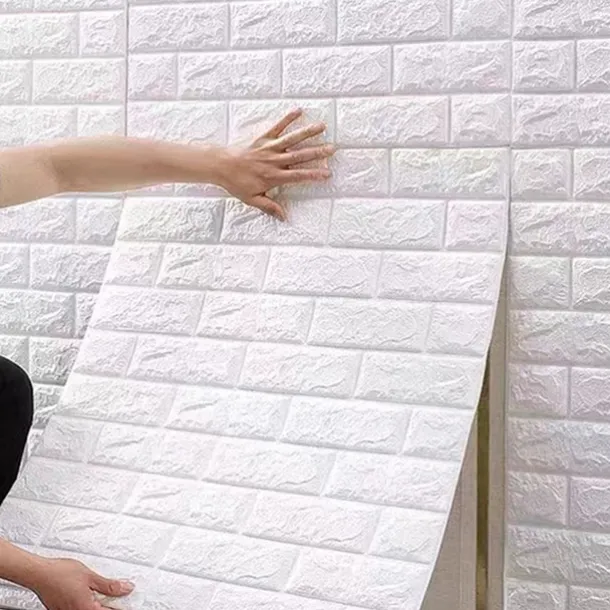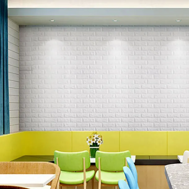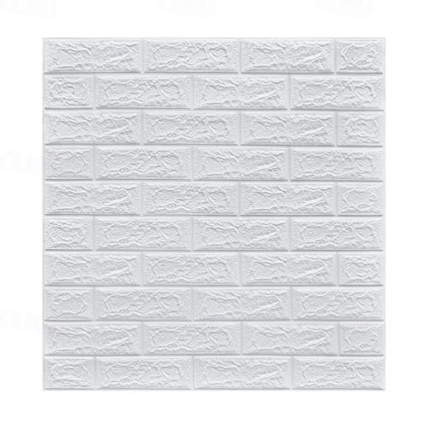 5pcs Wallpaper 3D Brick Self-Adhesive Wall Panels White Modern Waterproof Stone Look Wallpaper Foam Wall Sticker for Bathroom Bedroom Living Room Balcony Kitchen