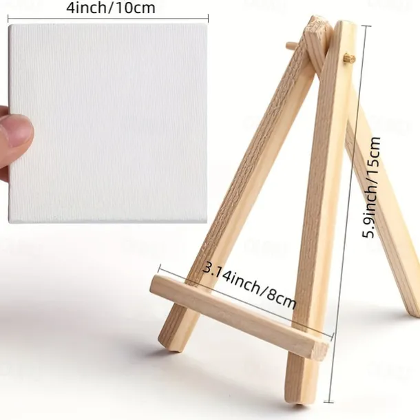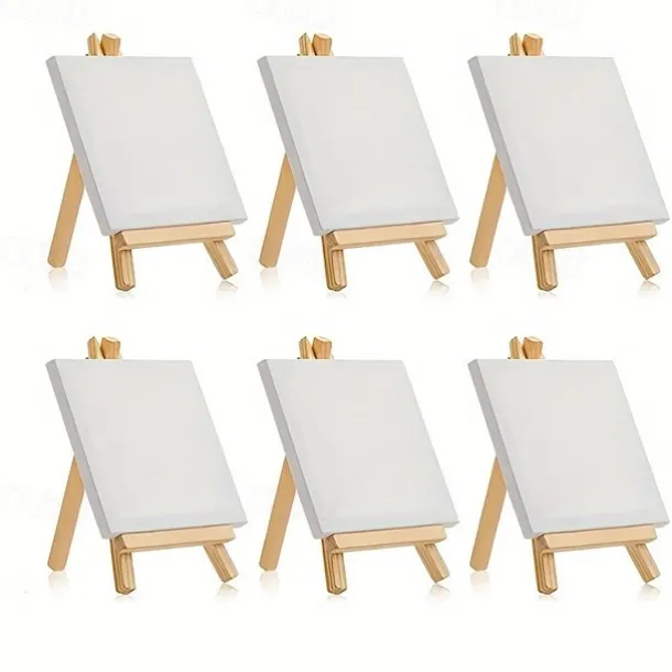 6 Pack Mini Canvas And Easel Set Mini Canvas Panels Mini Wood Easels Canvas Size Is 4 X 4 Easel Size Is 3.1 X 5.9 For Kids Painting Oil Painting And Diy Doodle