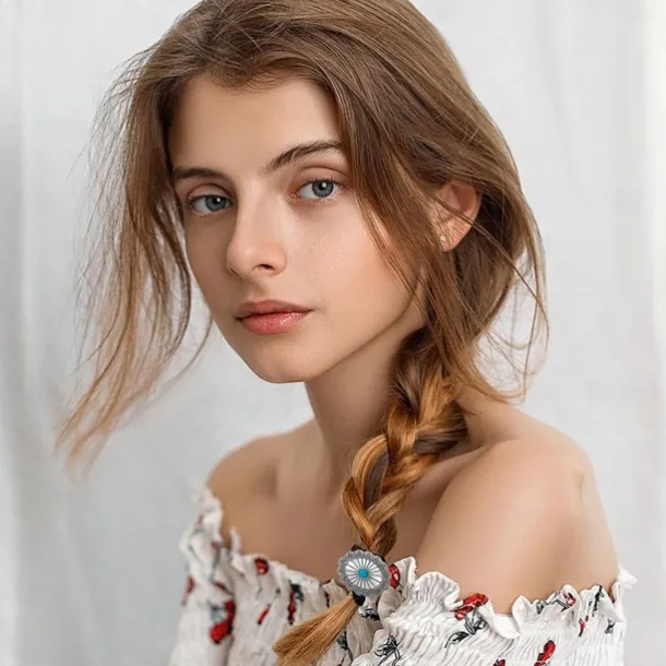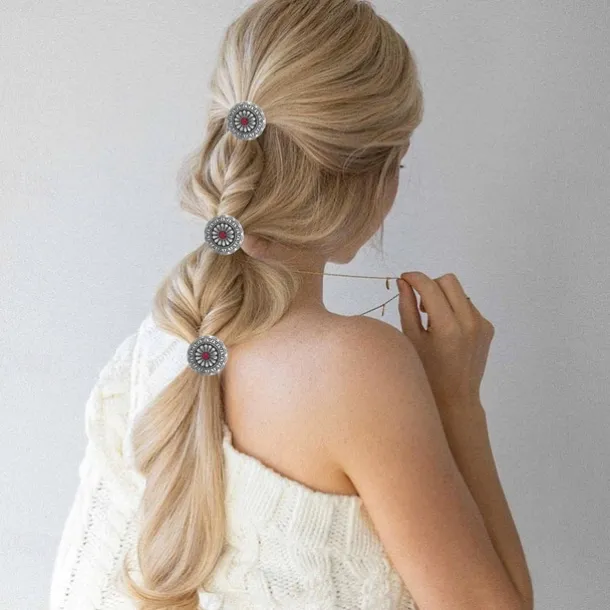 6 PCS Metal Western Style Ponytail Holders Boho Hair Ties Flower Circular Hair Ropes Vintage Squash Blossom Hairs Rope Vintage Turquoise Concho Squash Blossom Hairs Bands for Women Girls