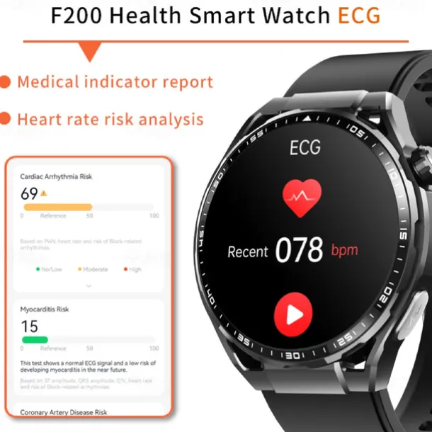 696 F200 Smart Watch 1.55 inch Smart Band Fitness Bracelet Bluetooth Pedometer Call Reminder Sleep Tracker Compatible with Samsung Men Hands-Free Calls Message Reminder IP 67 46mm Watch Case
