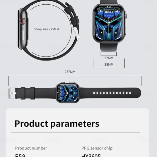 696 F59 Smart Watch 2.1 inch Smart Band Fitness Bracelet Bluetooth Pedometer Call Reminder Sleep Tracker Compatible with Android iOS Women Hands-Free Calls Message Reminder IP 67 38mm Watch Case
