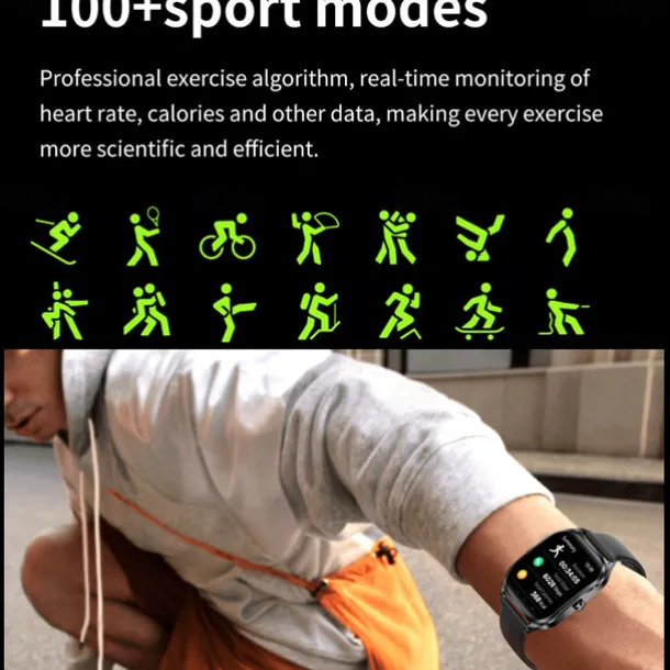 696 H35 Smart Watch 2.02 inch Smart Band Fitness Bracelet Bluetooth Pedometer Call Reminder Sleep Tracker Compatible with Android iOS Men Hands-Free Calls Message Reminder IP 67 44mm Watch Case