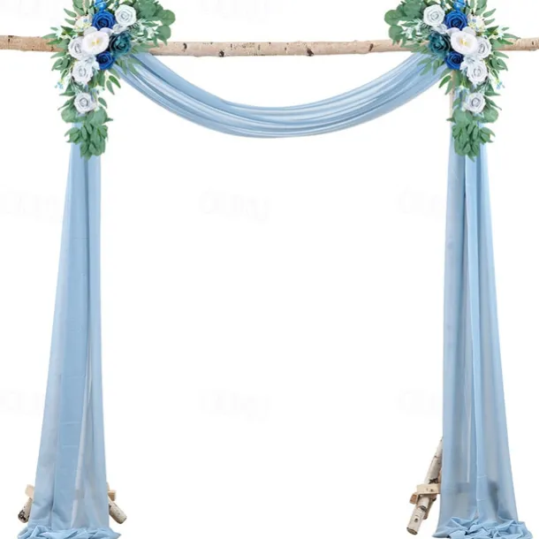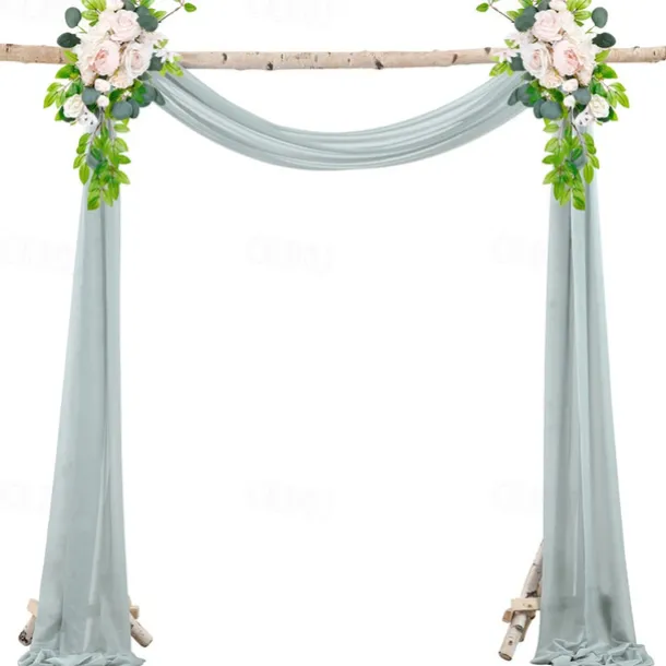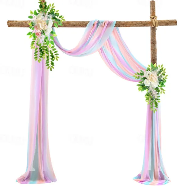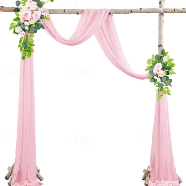 75*600cm Arched Door Gauze Curtain Outdoor Forest Lawn Wedding Decoration Hanging Curtain Wedding Decoration Cloth Curtain Pearl Chiffon Curtain