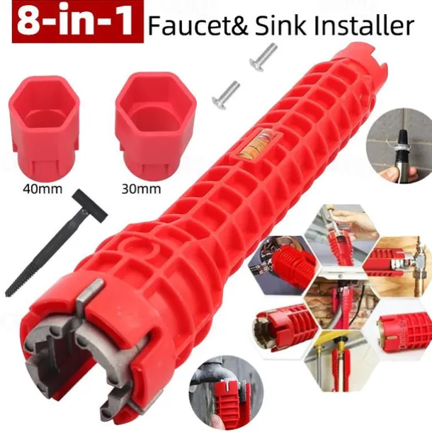 8 in 1 Sink Wrench Multi-Munction Water Pipe Faucet Wrench Repair Tool, Non-slip Kitchen Bathroom Faucet And Sink Installer, Wrench Tool For Repairing Plumbing