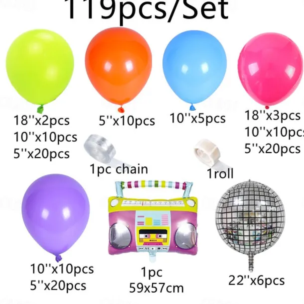 80s and 90s Theme Balloon Chain Set Arch Disco 4D Radio Balloon Retro Party Decoration