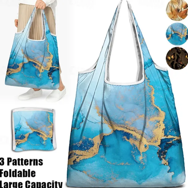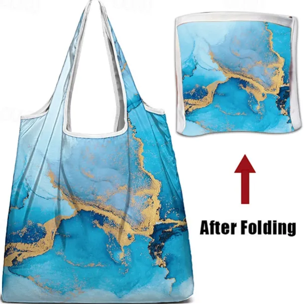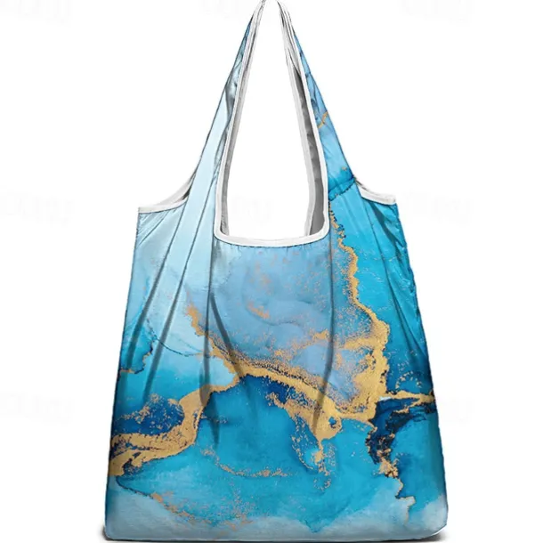 Abstract Blue and Gold Marble Tote Bag for Women – Reusable Eco-Friendly Shopping Bag with Artistic Design, Perfect for Daily Use and Travel