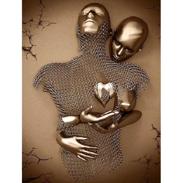 Abstract People Wall Art Canvas Love Couples Prints Painting Artwork Picture Kissing Hug Love Bronze Glitter Home Decoration Décor Rolled Canvas No Frame Unframed Unstretched