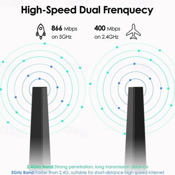 5. Supports 2.4GHz & 5GHz WLAN networks for dual band connections.