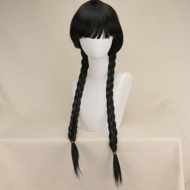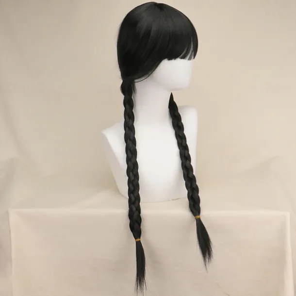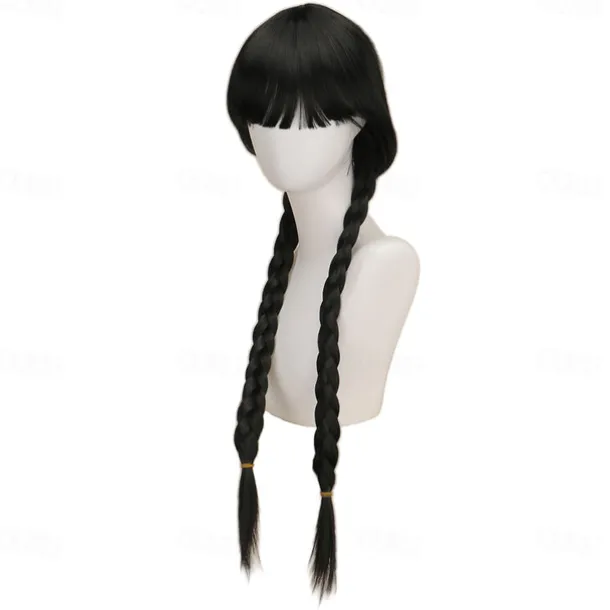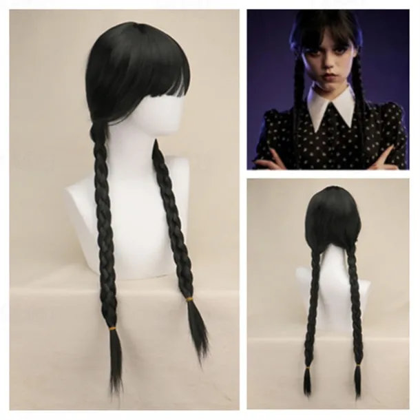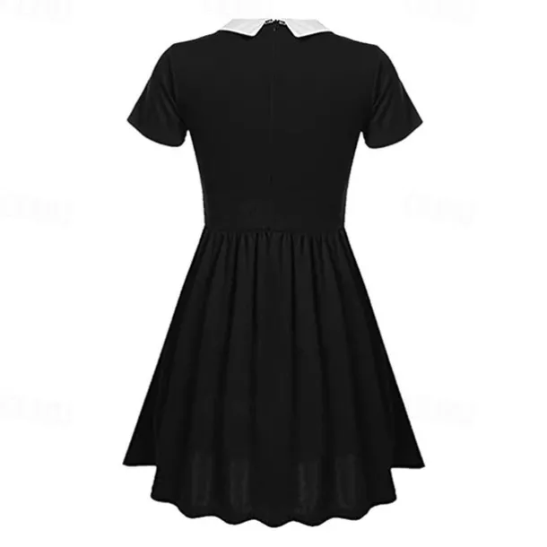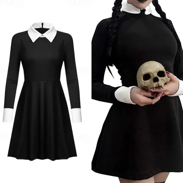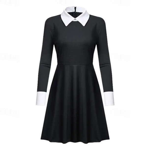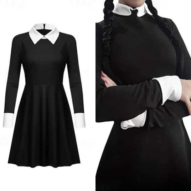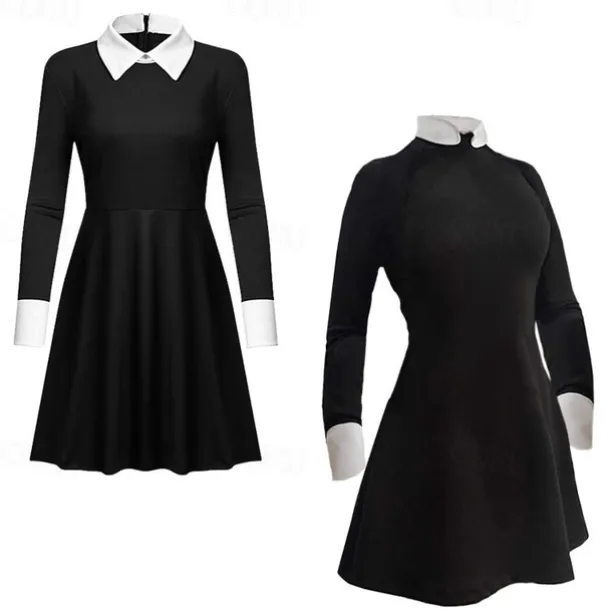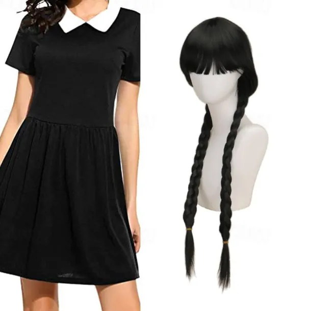 Adults’ Wednesday Addams Dress Addams Family Women’s Goth Gothic Flare Dress Movie Cosplay Costume Party Little Black Dress Masquerade with Wednesday Addams Wig Cute Natural Soft Hair Wig Cap Braids