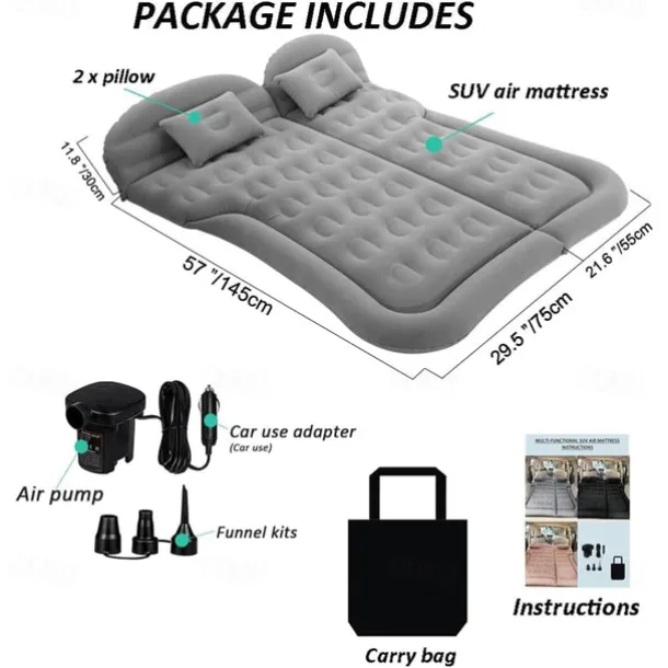 Air Mattress Camping Bed Cushion Pillow Inflatable Thickened Car Air Bed Mattress with Electric Air Pump Portable Sleeping Pad for Travel Camping