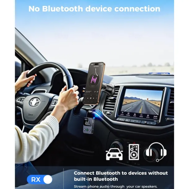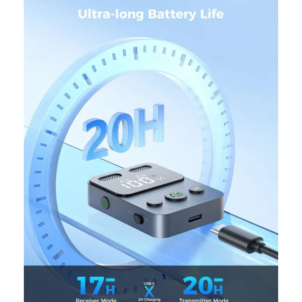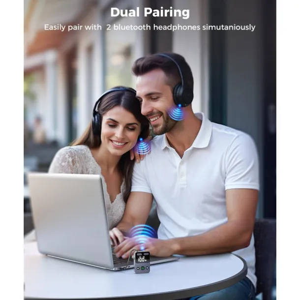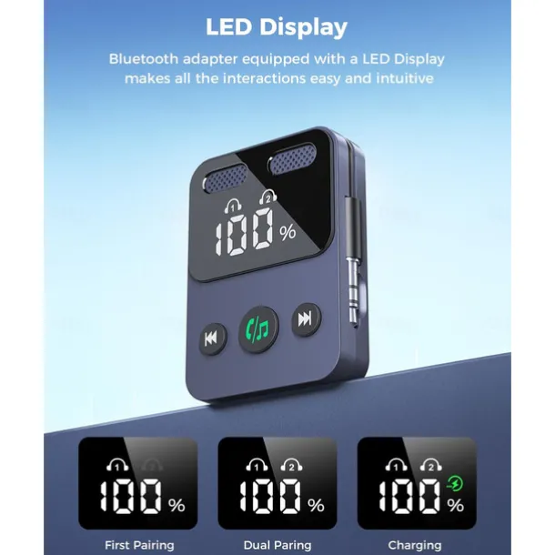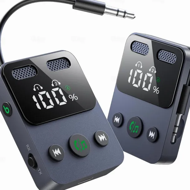 Airplane Bluetooth Transmitter Receiver for 2 AirPods or Headphones, HD Display Low Latency Bluetooth Wireless Transmitter, 3.5mm Aux Audio Jack Adapter for Airplane/TV/Car/Home Stereo