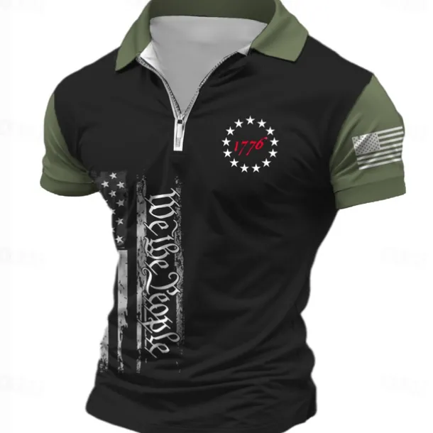 American Independence Day Men’s American Flag Veterans Zip Polo Shirts Golf Shirt Short Sleeve Polo Shirts Collared Shirts Casual Streetwear Vacation Wear Party Outfits 3D Print Quarter Zip Polo