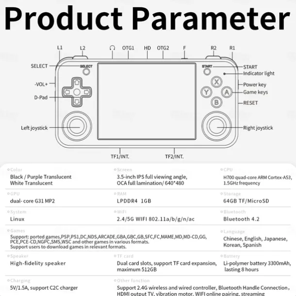 ANBERNIC RG35XX H Handheld Game Console, 3.5 Inch HD Screen Portable Audio Video Player, Double Rocker Handheld Retro Game Console