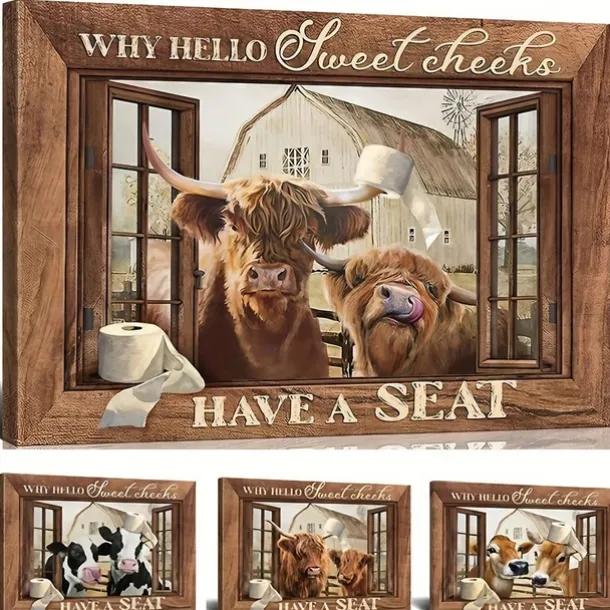 Animal Wall Art Canvas Bathroom Highland Cow Prints and Posters Pictures Decorative Fabric Painting For Living Room Pictures No Frame
