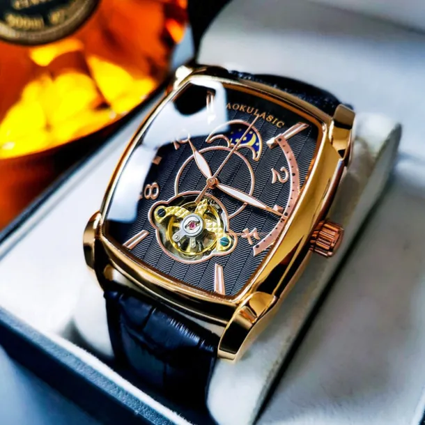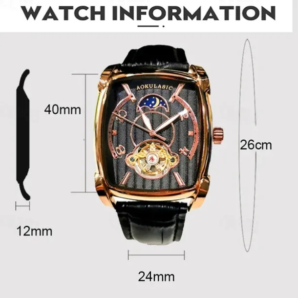 AOKULASIC Top Brand Men Watch Automatic Mechanical Mens Watches Tourbillon Fashion Waterproof Luxury Moon Tonneau orologio uomo