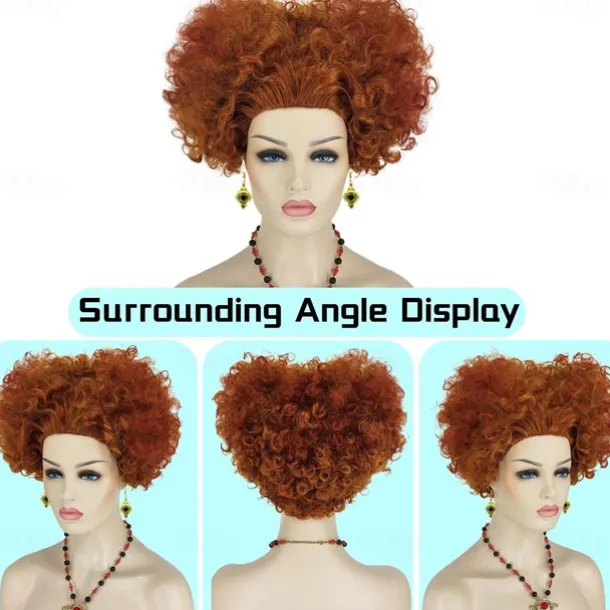 Ariker Winifred Sanderson Wig Curly Brown Hocus Pocus 2 Winifred Wig for Women Sanderson Sisters Accessories Witch Wig Without Teeth Necklace Earrings Halloween Wigs
