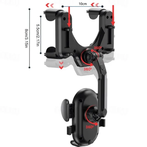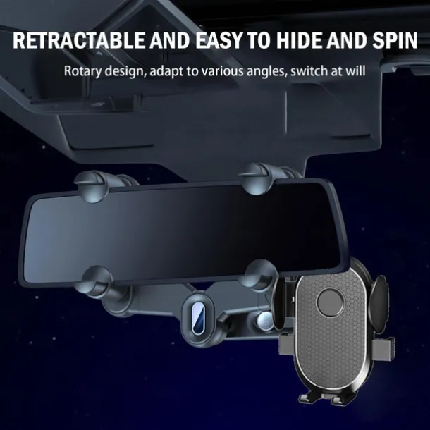 Auto Rearview Mirror Phone Holder in Car Mount Stand for CellPhone Car Mobile Support Rotating Adjustable Car SmartPhone Holder Compatible with 4-7 Cell Phones Phone Accessory