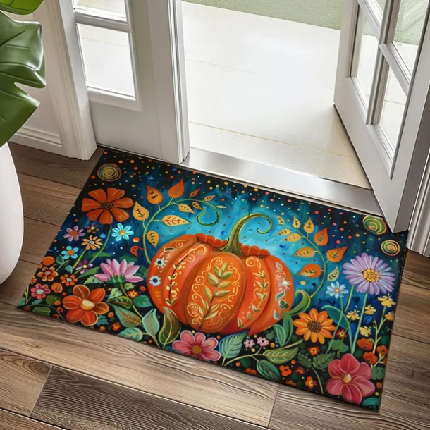 Autumn Pumpkin Folk Art Doormat Kitchen Mat Floor Mat Non-Slip Area Rug Oil Proof Rug Indoor Outdoor Mat Bedroom Decor Bathroom Mat Entrance Rug